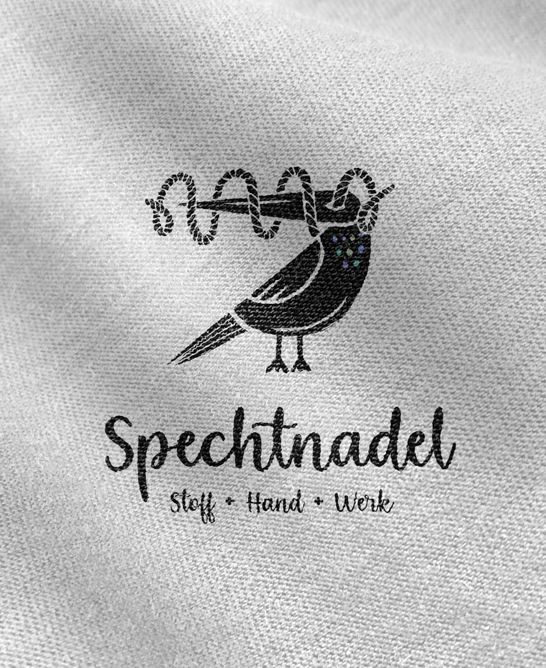 Handgezeichnetes Logo für ‚Spechtnadel‘. Eine Reise vom Stift zum Grafiktablett auf Stoff.